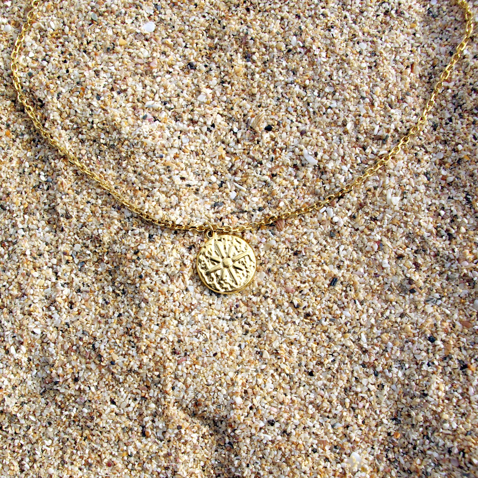 Chaîne dorée en forme de O, épaisseur moyenne (2.3mm), avec une belle pièce unique en pendentif.